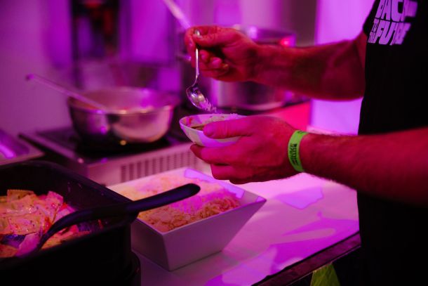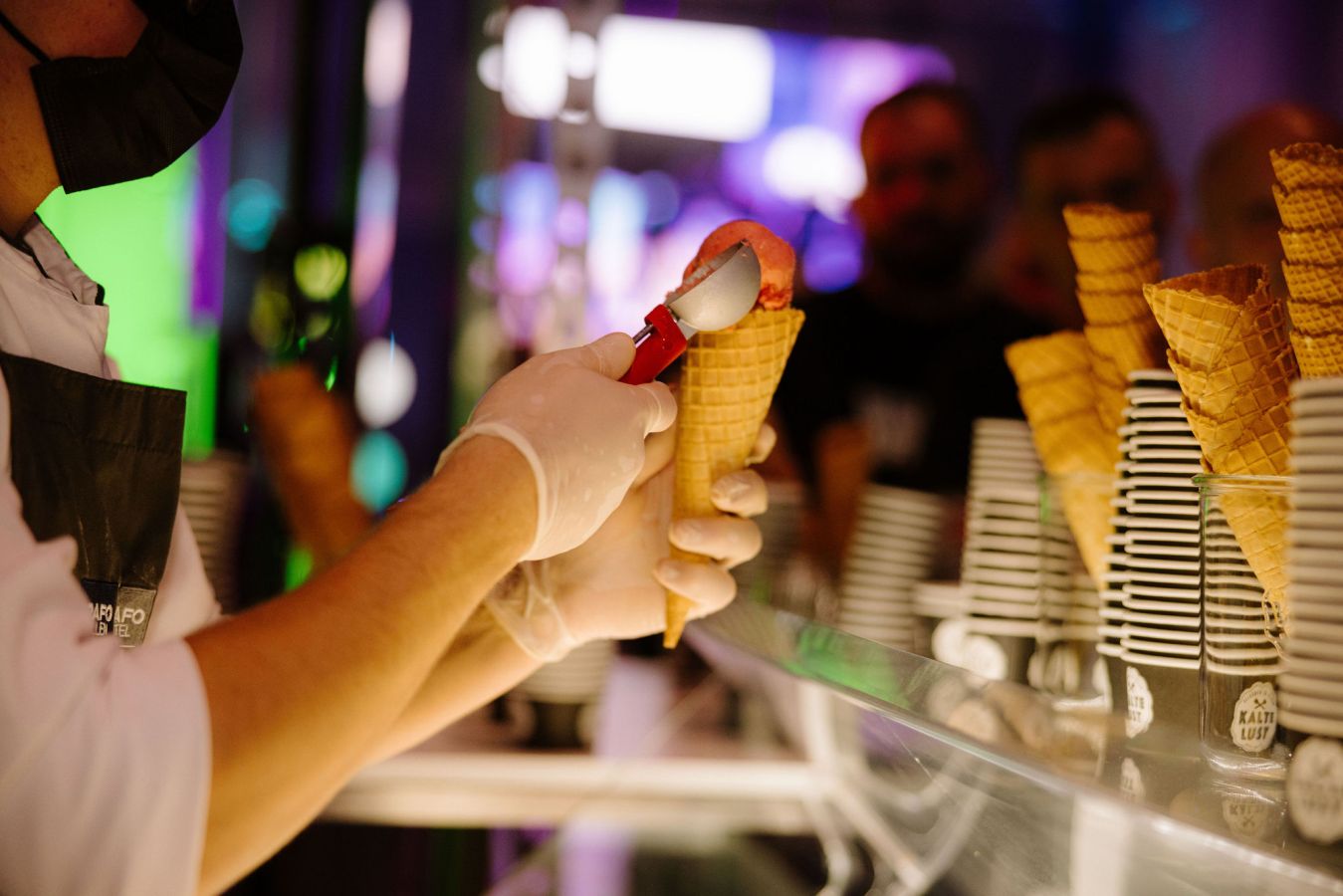 Die passende Stimmung wurde durch LED Mobiliar, diverse Neon-Elemente und UV-Licht geschaffen. Das kulinarische Verwöhnprogramm führte die Gäste von gestern in die Zukunft.