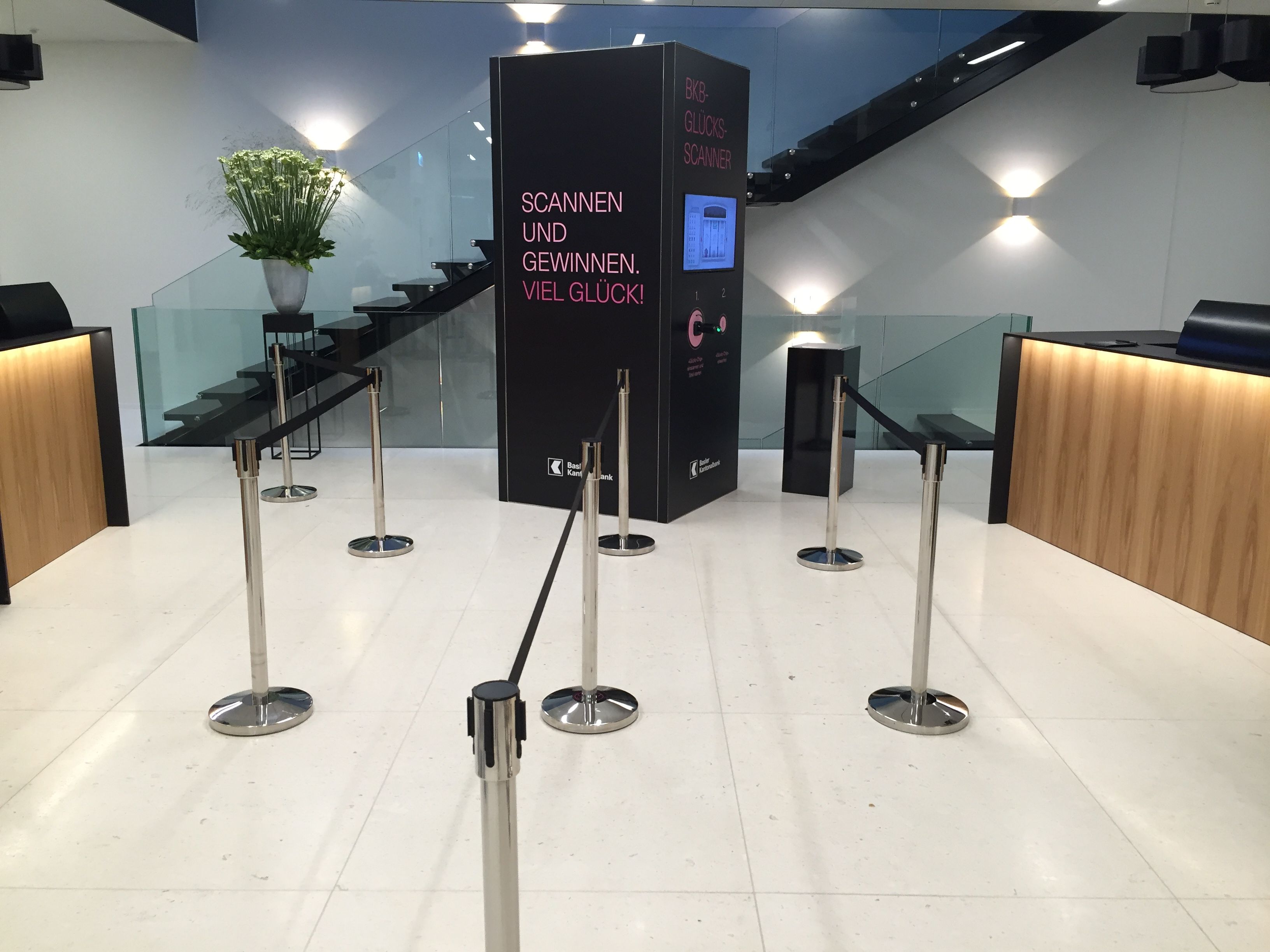 In einer physischen Einladung erhielten alle Angeschriebenen ihren Glückschip zugestellt - einen Jeton mit aufgedrucktem QR-Code. Der Glückschip konnte dann am Eröffnungsevent mit in die jeweilige Filiale gebracht werden, wo der Glücksscanner bereits auf die Gäste wartete. Um zu sehen, welchen der attraktiven Sofortpreise man gewinnt, konnte der auf dem Glückschip aufgedruckte QR-Code unter den Scanner gehalten werden und schon begannen die drei Räder zu drehen.