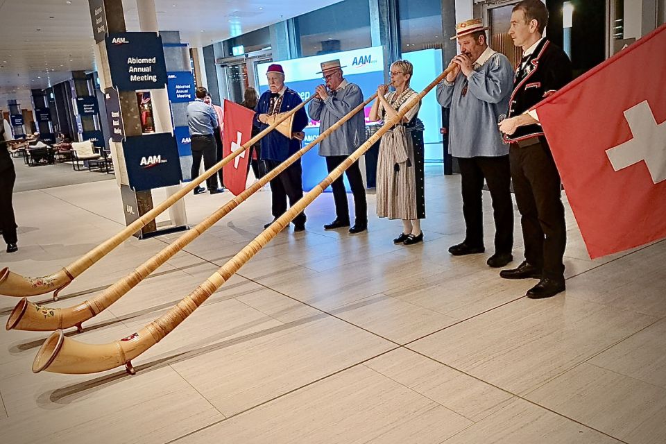 Das Alphorntrio sorgte mit traditionellen Klängen für die richtige Stimmung. Begleitet wurden sie von zwei Fahnenschwingern. Ein weiteres, kulturelles Highlights war das Talerschwingen, bei dem sich auch die Gäste versuchen durften. Originelle Gondeli und Sessellifte als Sitzgelegenheiten brachten echtes Berggefühl ins Foyer. Ein Photobooth mit Bergkulisse lud zum Erinnerungsfoto ein und setzte gleich zu Beginn einen unvergesslichen Moment.